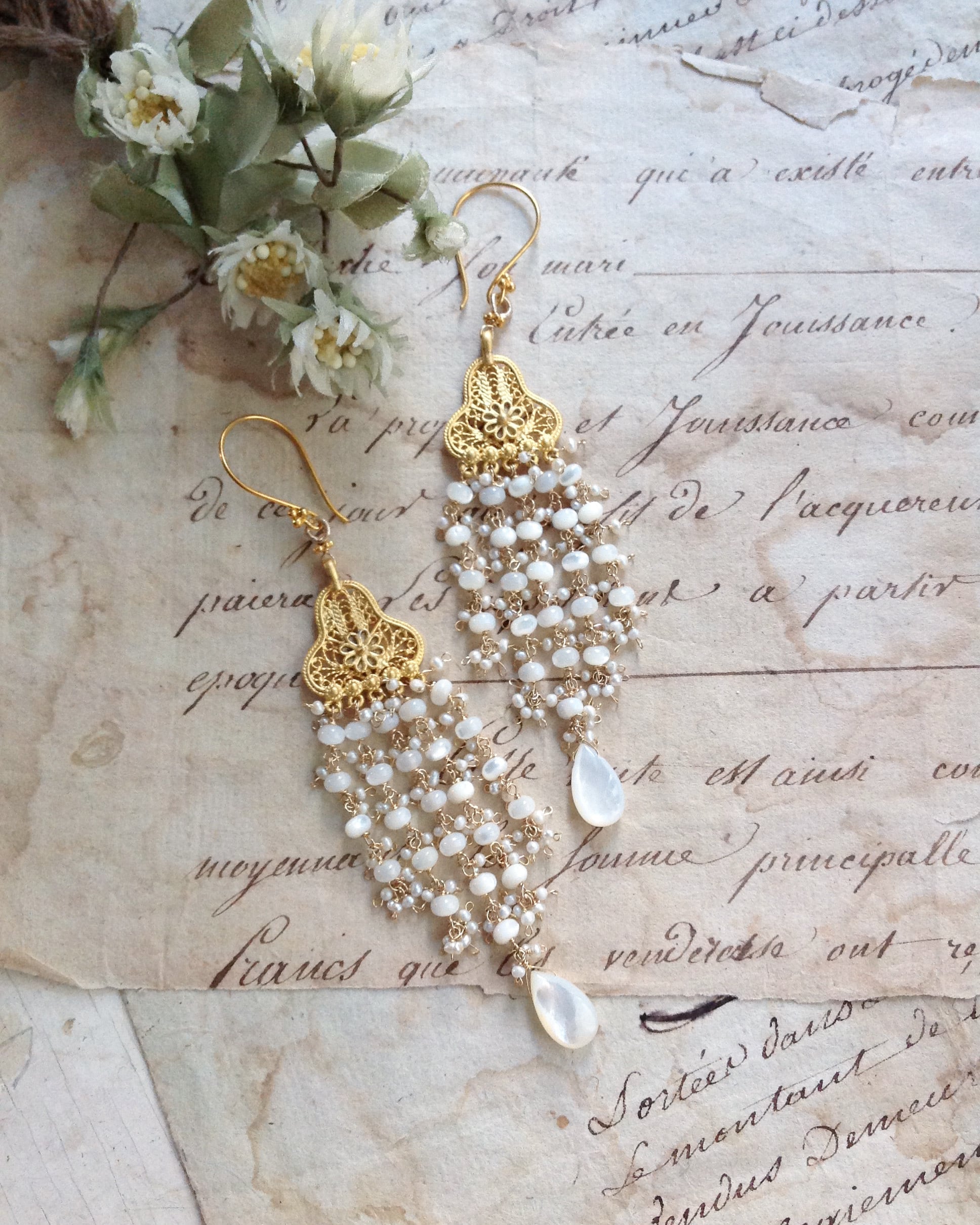 MOP(白蝶貝)と淡水パールを丁寧に繋いだ、揺れの美しいピアスです。