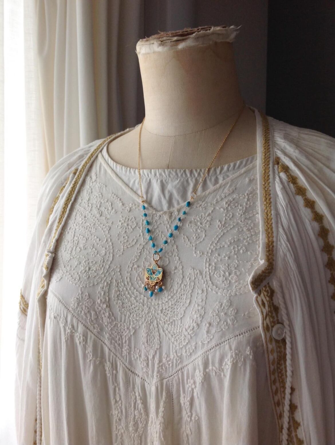 ターコイズと淡水パールのデザインチェーンは単体でもお使いいただけます。