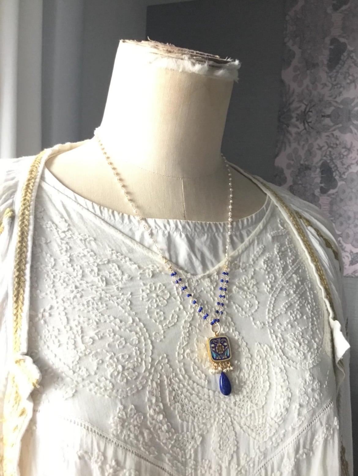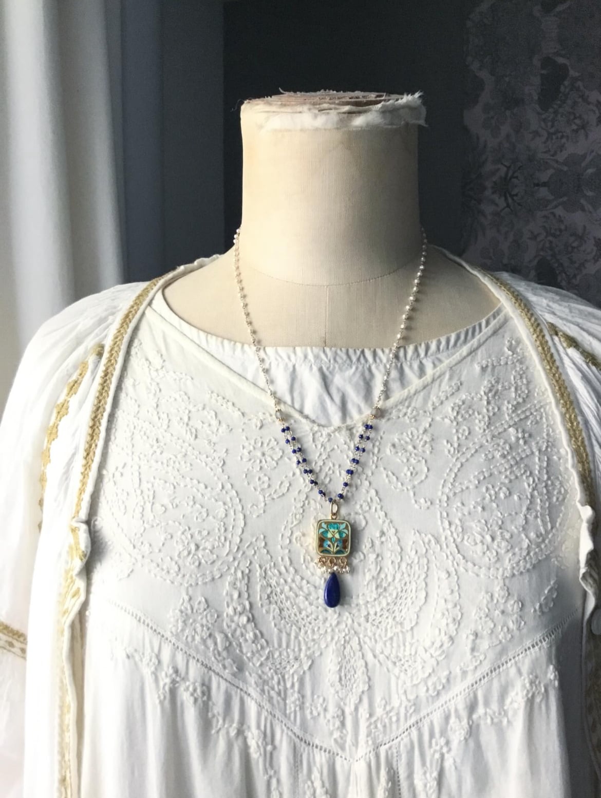 パーツはほぼ一点ものになり、こちらはラピスラズリにピッタリな鮮やかなブルーが入ったものを使用しています。