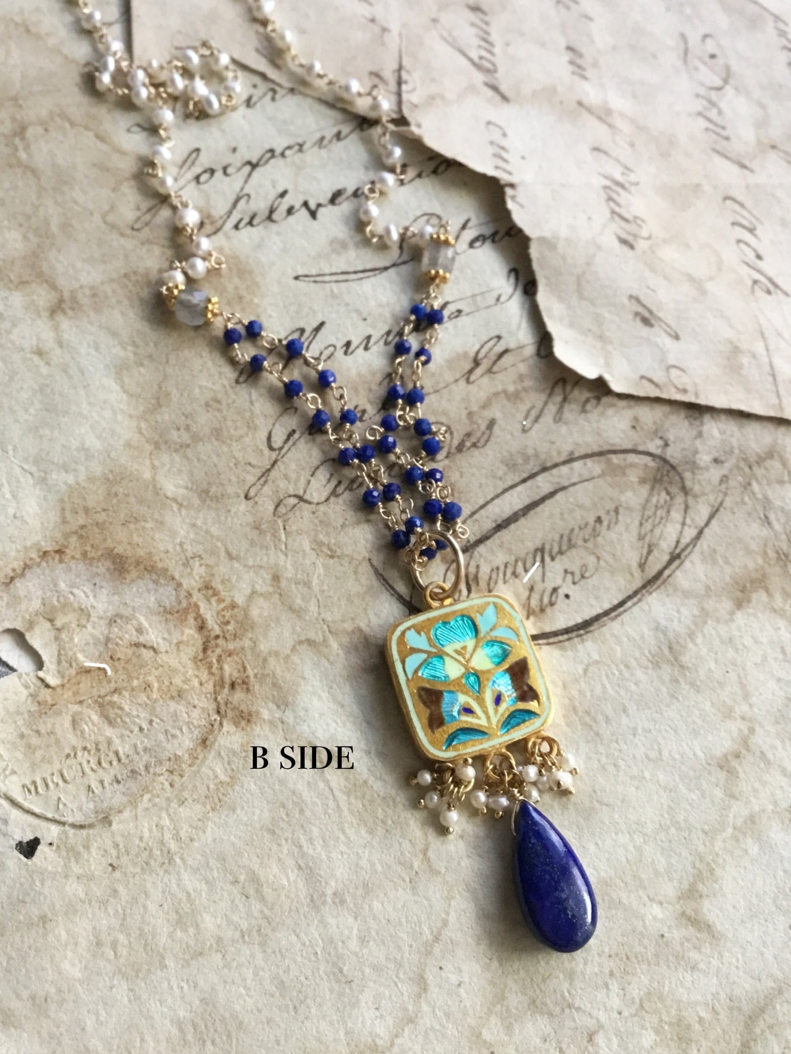 素材:金具、ワイヤー 全て14kgf、ラピスラズリ、ラブラドライト、ミーナカリ(sv98%×18kgp)