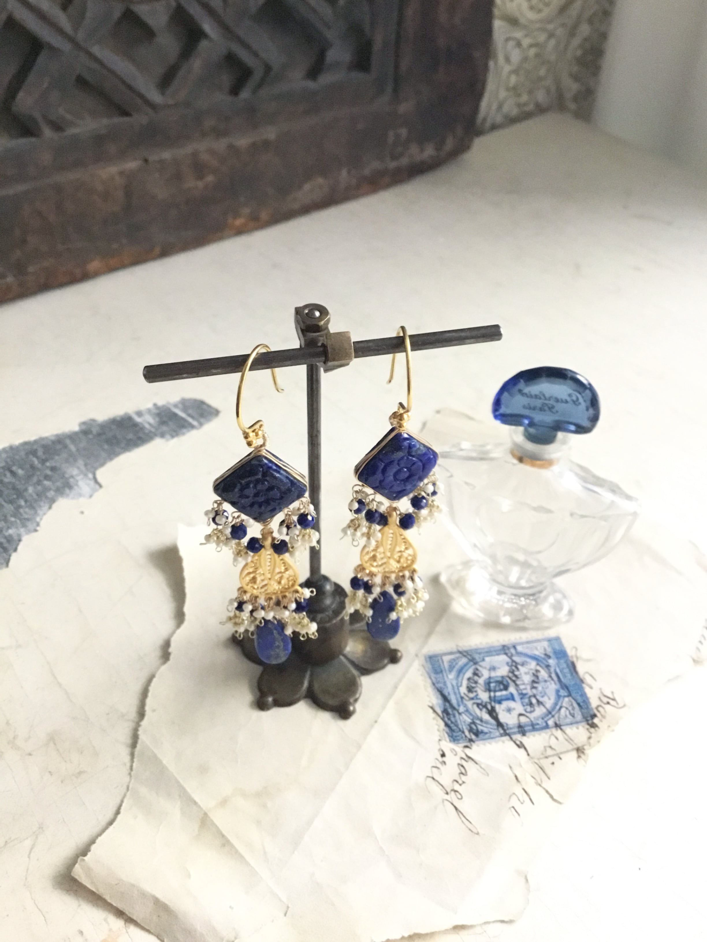 オリジナルのラピスラズリカービングと、トルコのフィリグリーのパーツを使用しています。