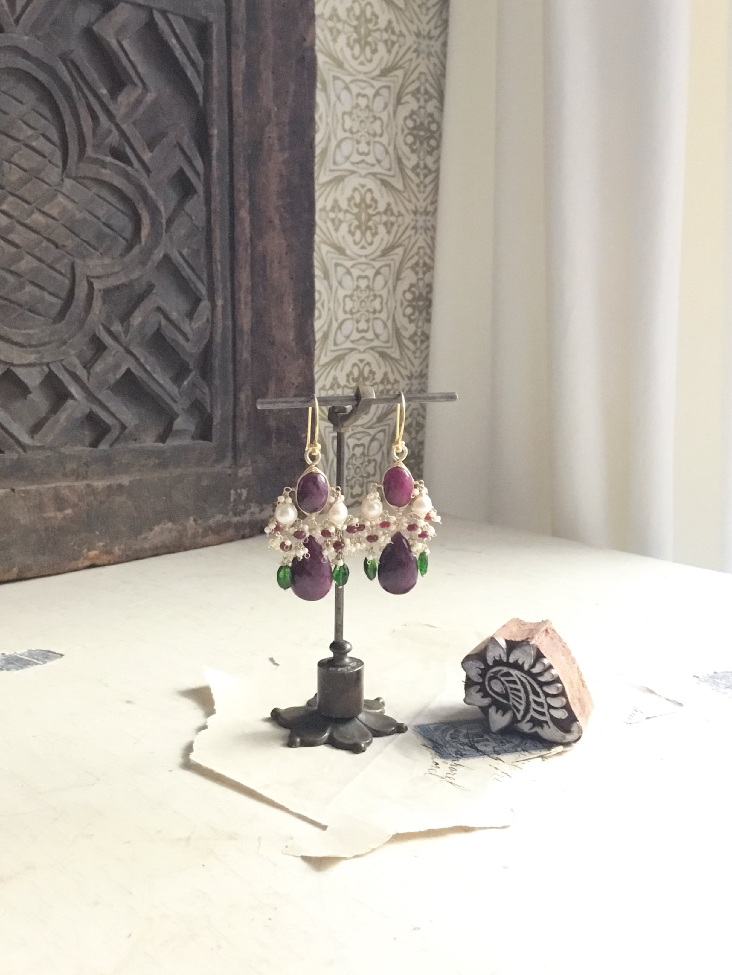 素材:ワイヤー14kgf、ピアスフック24kgp、淡水パール、ルビー、クロムダイオプサイド