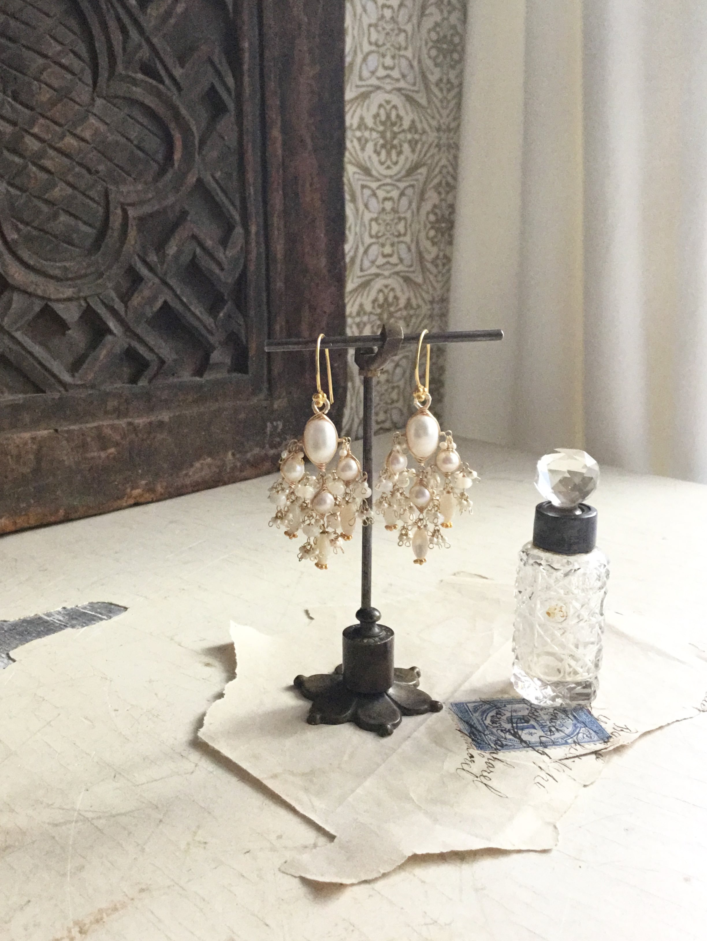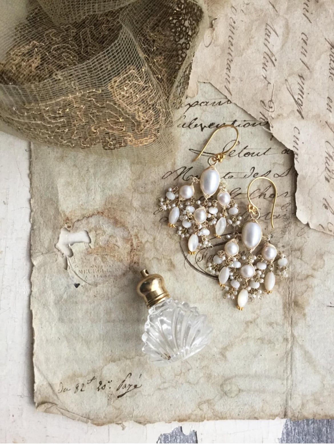 素材:ワイヤー14kgf、ピアスフック24kgp、淡水パール、MOP(白蝶貝)