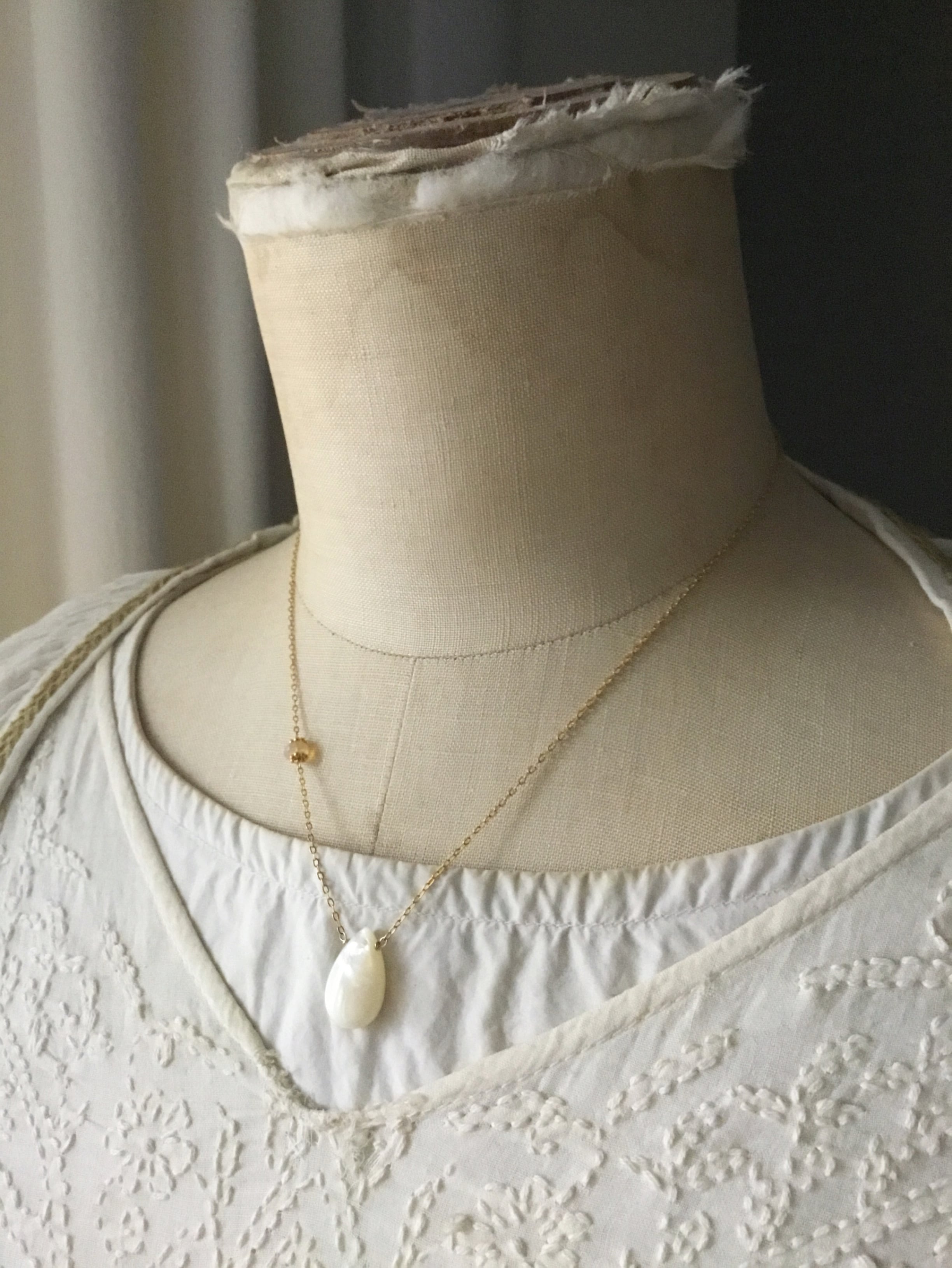 トップの白蝶貝の艶と、小さなオパールが一粒ついているのもポイントです。