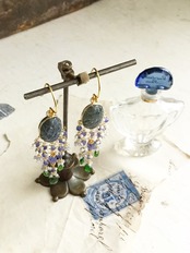 素材:ワイヤー14kgf、ピアスフック24kgp、淡水パール、ラブラドライト、クロムダイオプサイド.タンザナイト