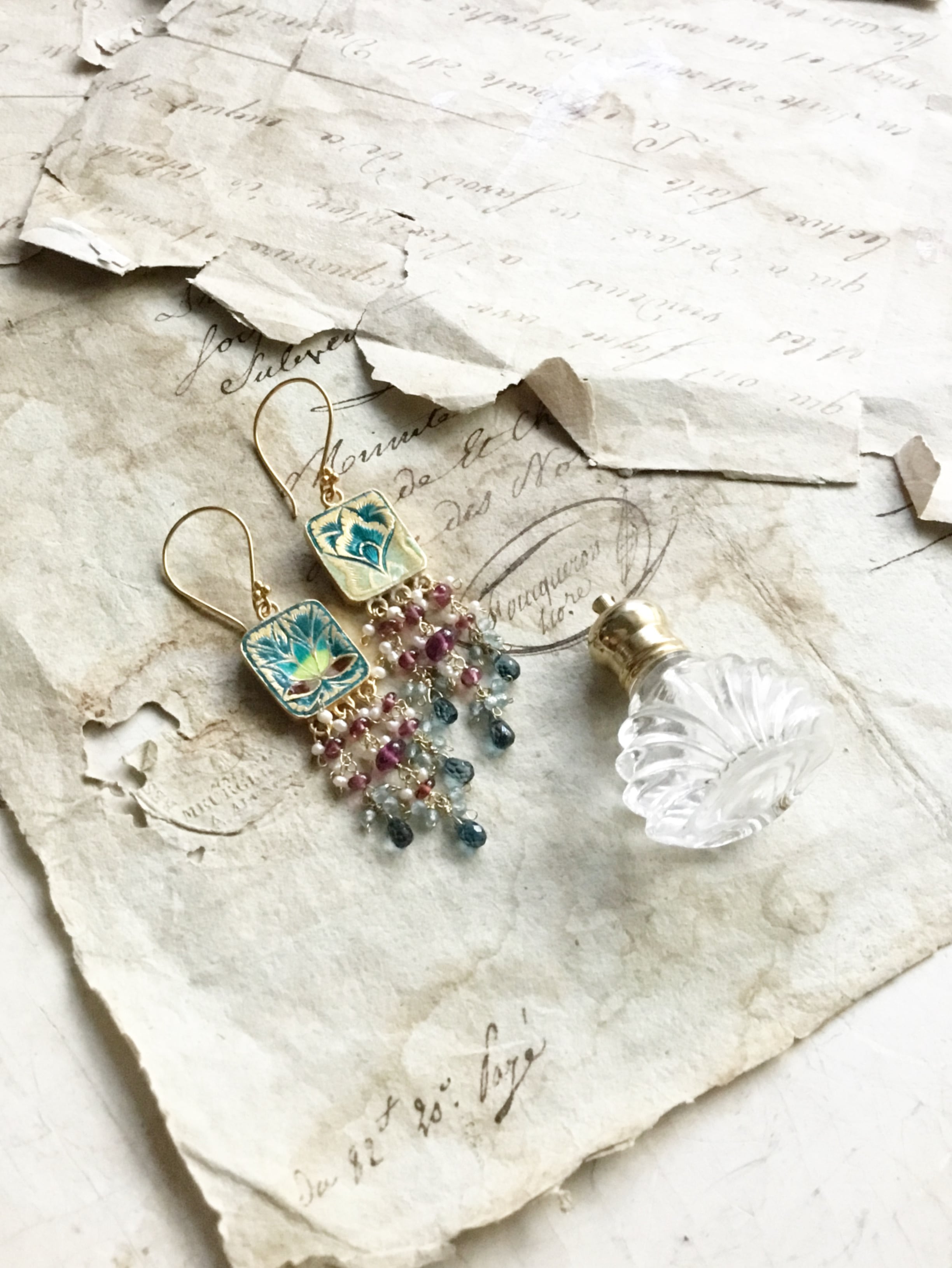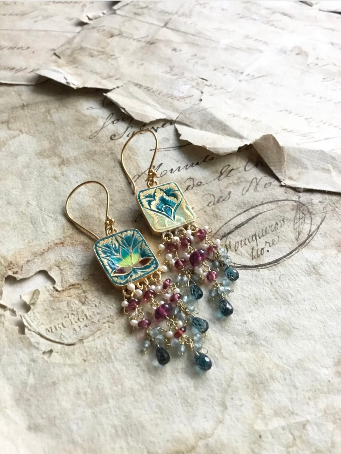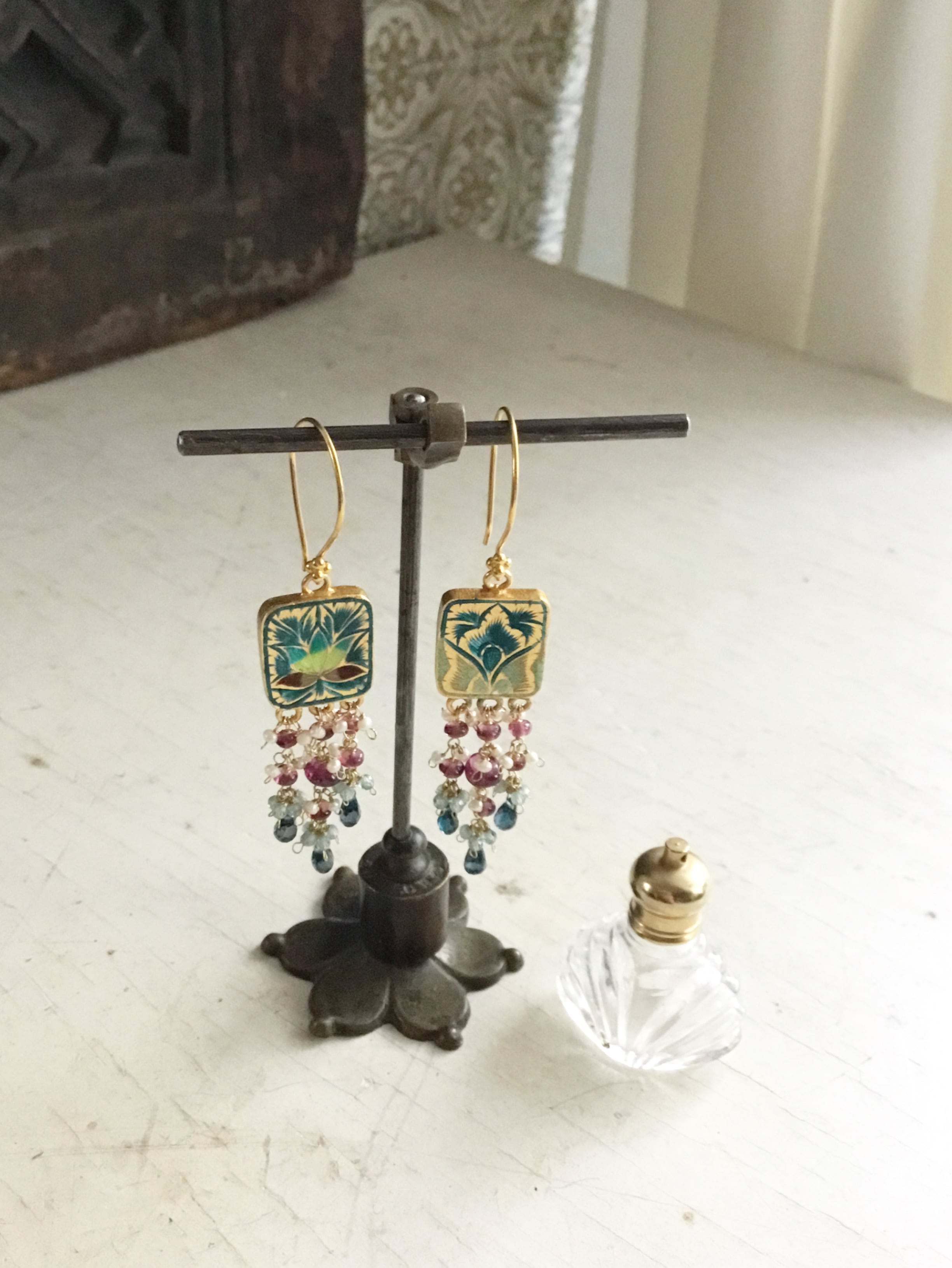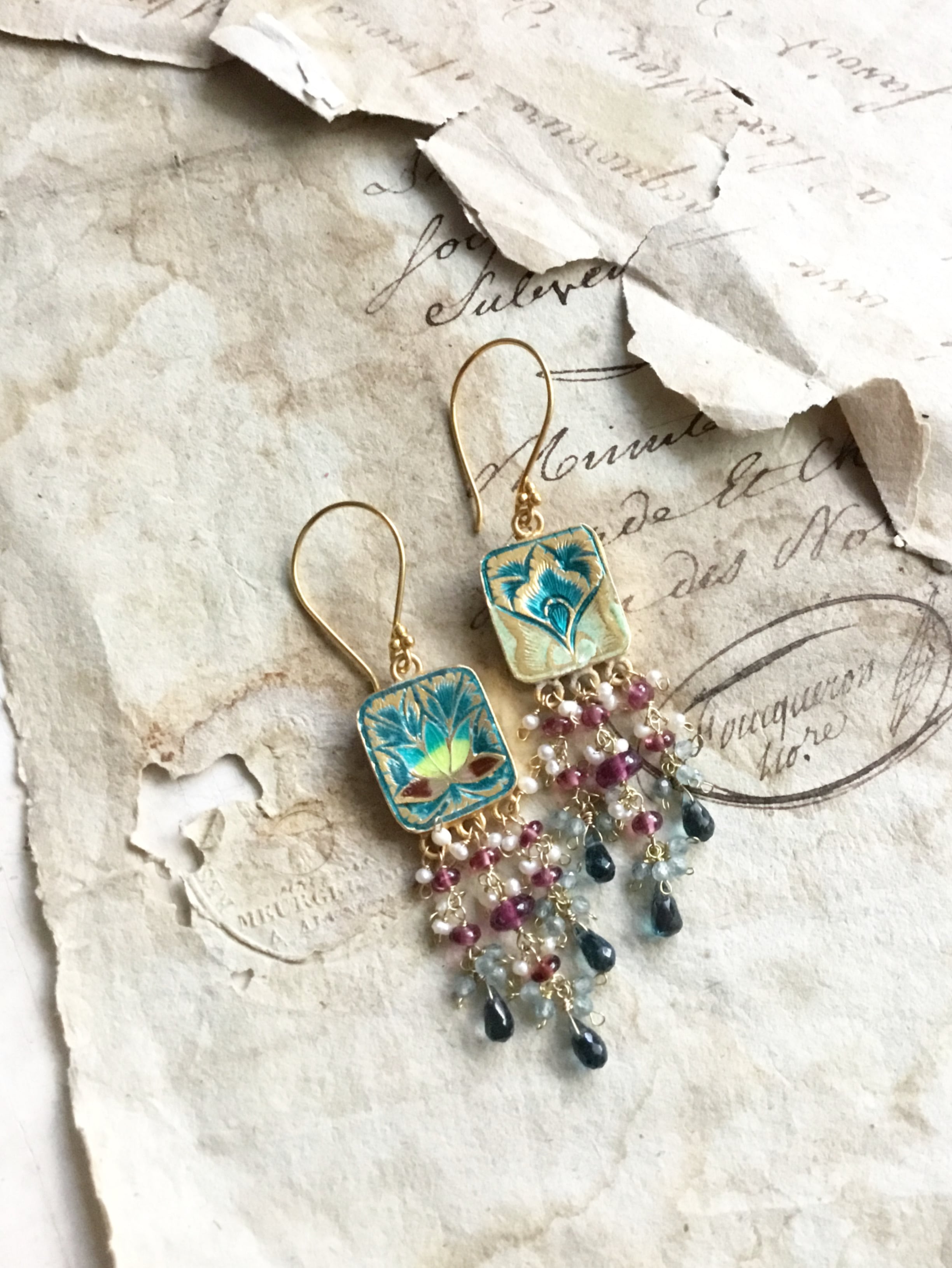 美しいクダイとミーナカリのカラーに合わせ、ロードライトガーネットとロンドンブルートパーズを使用しています。